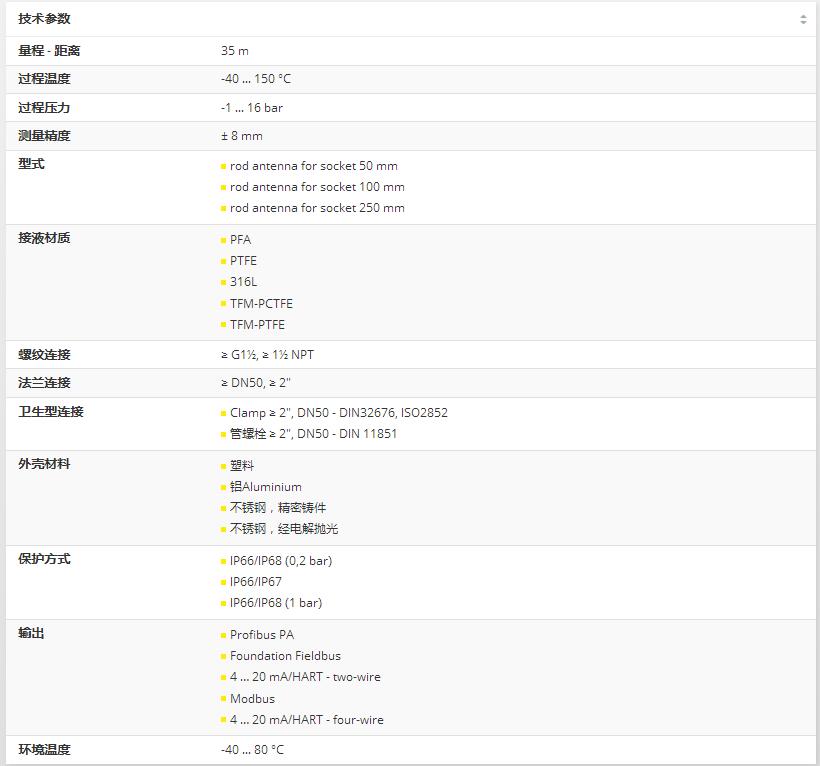 VEGAPULS 65雷達傳感器用于一般過程條件下液體的持續(xù)性物位測量。 適于一般過程條件下帶較小工作接口的物位測量。 細(xì)窄的棒式天線能安裝于較小的容器開口處。